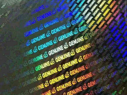 วัตถดิบโฮโลแกรมกันปลอมแบบต่างๆ เช่น VOID, Void if removed, Genuine, Original Product เป็นต้น ทั้งแบบลอกเสียหายและไม่เสียหาย ทั้งเป็นฟอล์ยและสติกเกอร์ แบบม้วนและแผ่นสำหรับ งานพิมพ์สกรีน หรือเล็ตเตอร์เพรส ซึ่งเรามีแม่แบบโฮโลแกรม (Master) พร้อมโดยสามารถผลิตตาม คำสั่งซื้อ และตัดขนาดได้ความต้องการให้กับลูกค้า